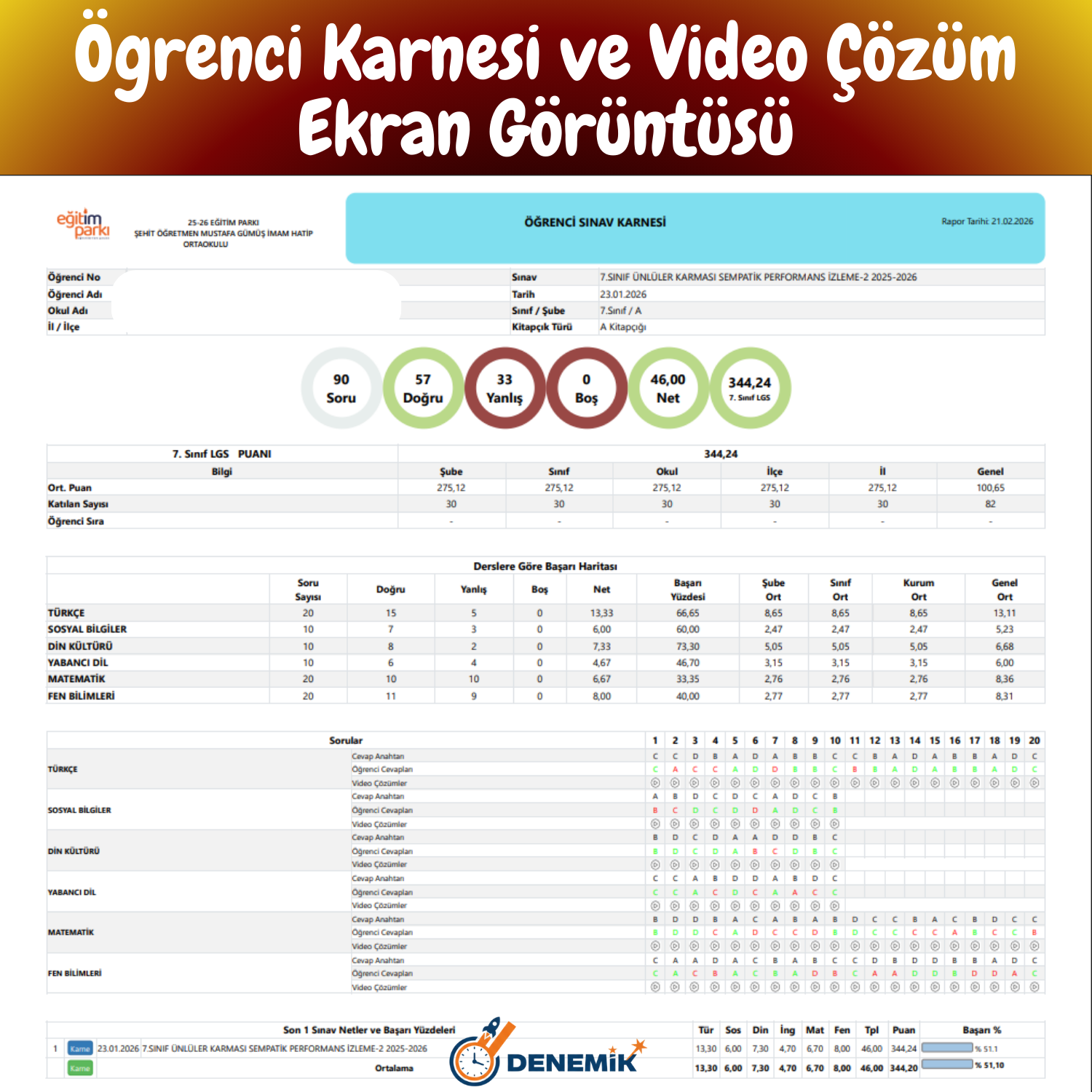 Detaylı Öğrenci Karnesi: Sınav bitince bekleme! Netlerini, ders bazlı başarı yüzdelerini ve Türkiye geneli sıralamanı anında gör.
